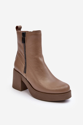 Leather Boots with Massive Heel and Zippers Dark Beige Lemar Littosa