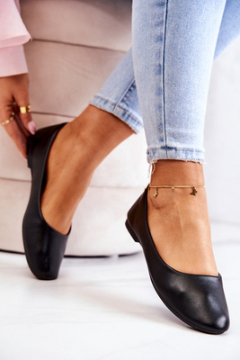 Baleriny Skórzane Wsuwane Czarne Stacee
