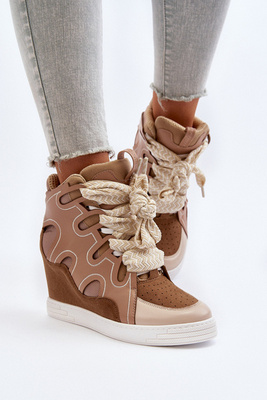 Sneakersy Damskie Koturn Beżowe Leoppa NS393P