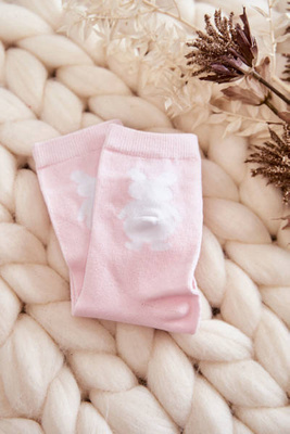 Skarpetki Młodzieżowe Bawełniane Biały Królik Różowe