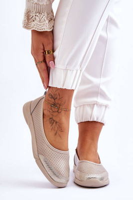 Ażurowe Baleriny Z Naturalnej Skóry Beżowe Vinceza 95323
