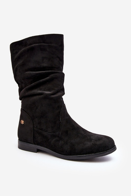 Botki Damskie Płaski Obcas Marszczona Cholewka Czarne Kotine 23BT35-6448