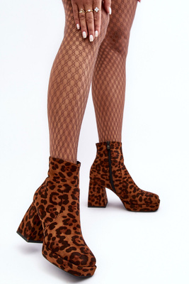 Botki Masywny Obcas Zwierzęcy Wzór Platforma Zamsz Brązowe Abnous NS293P