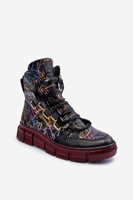 Botki Płaskie Sznurowane Skóra Maciejka 06309-23 Czarne