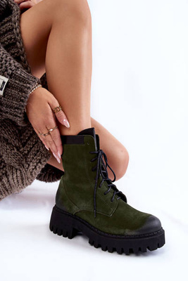 Botki Klasyczne Zamsz Ocieplane Zielone Lemar Caima