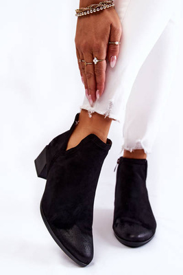 Botki Zamsz Damskie Ocieplane Suwak Czarne Emilien