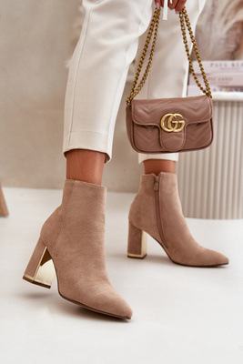 Eko Zamszowe Botki Damskie Zapinane Na Zamek Obcas Słupek Ciemnobeżowe Bonucci