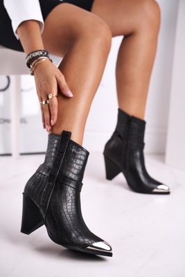 Botki Damskie Na Obcasie Z Wycięciami Czarne Sicily
