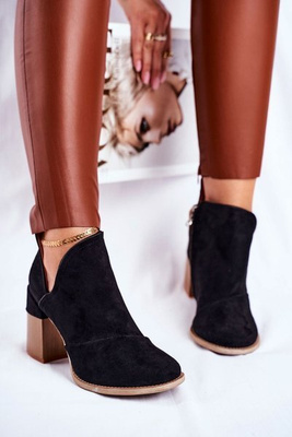 Zamszowe Botki Na Obcasie Z Klamrą Czarne Esen