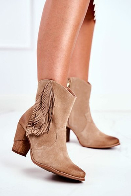 Damskie Botki Kowbojki Zamszowe Beżowe Ferders