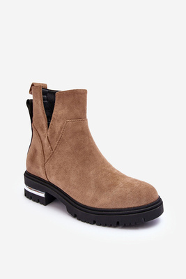 Botki Workery Ocieplane Zamsz Płaski Obcas Beżowe Nacelle NS336P