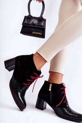 Botki Zamsz Obcas Ozdobny Zamek Czarne Lisette