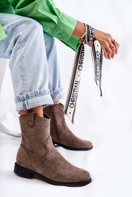 Botki Kowbojki Damskie Zamsz Beżowe Mindy