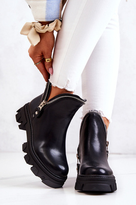 Skórzane Botki Ozdobne Suwaki Czarne Deborah