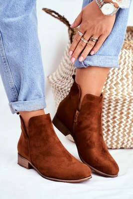 Botki Damskie Płaski Obcas Wiosenne Camel Elizabeth