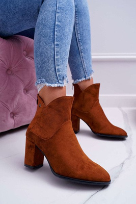 Botki Damskie Na Obcasie Suwak Zamszowe Camel Farre