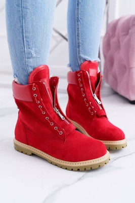 Lu Boo Damskie Czerwone Zamszowe Timberki Trapery Suwaki Nancy