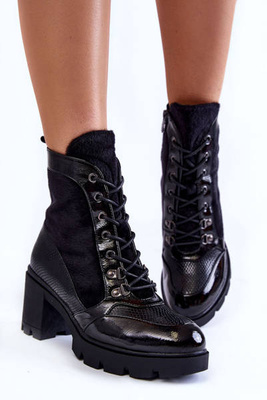 Botki Damskie Lakier Ocieplane Czarne Hege
