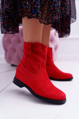 Botki Damskie Na Koturnie Płaski Obcas Ocieplane Za Kostkę Czerwone Demini