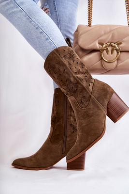 Botki Kowbojki Damskie Zamsz Ażurowe Khaki Eleonore