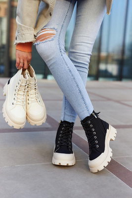 Botki Trampki Skórzane Beżowo-Białe Ashlee