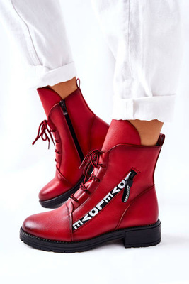 Botki Damskie Skórzane Ocieplane Maciejka Czerwone 04625-08