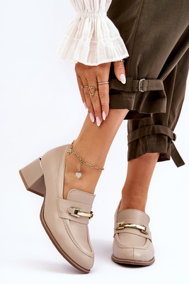 Wygodne Skórzane Czółenka Beżowe Lemar Damira
