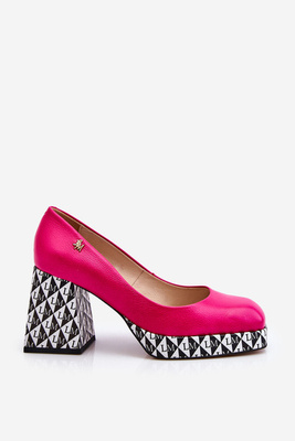 Czółenka Zamsz Słupek Fuksja Sergio Leone PB216
