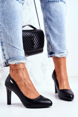 Czółenka damskie Czarne Matowe Sergio Leone Na Słupku Campbell