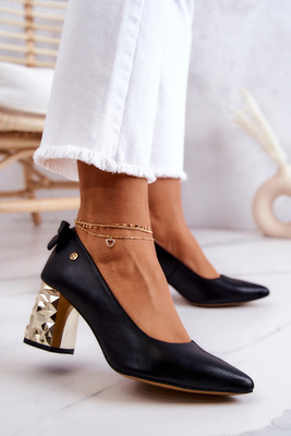 Czółenka Skórzane Słupek Czarne Maciejka 05334-01