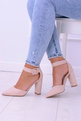 Damskie Czółenka Na Słupku Zamszowe Beżowe Harinta