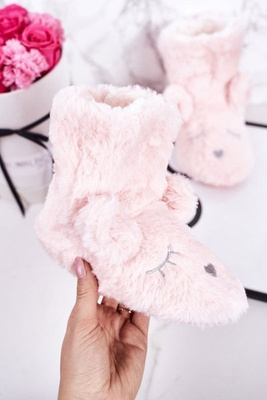 Dziecięce Papcie Ocieplane Kożuszkiem Pudrowy Róż Sleepyhead