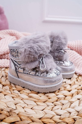 Ocieplane Dziecięce Botki Śniegowce Z Futerkiem Srebrne JellyBeans