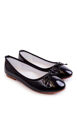 Balerinki Lakierowane Dziecięce Ozdobna Kokardka Czarne Cassie