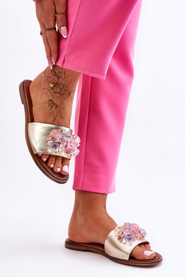 Klapki Skórzane Damskie Ozdoby Złote Nicole 2726