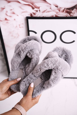 Klapki Damskie Z Futerkiem Szare Sensitive