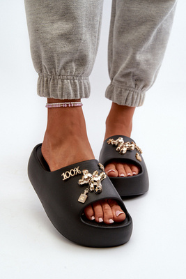 Klapki Damskie Na Platformie Ze Zdobieniem Czarne Jestella 78-151
