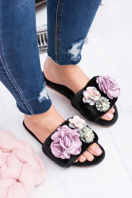 Czarne Klapki Damskie Z Kwiatkami Lu Boo Bouquet