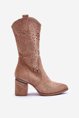Kozaki Kowbojki Damskie Zamsz Ciemnobeżowe Lewski 3094/F