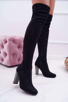 Kozaki Damskie Na Obcasie Lu Boo Zamszowe Czarne