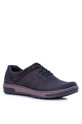 Męskie Skórzane Półbuty Casual Granatowe Bill