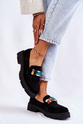 Półbuty Loafery Zamsz Ozdoba Czarne Janissa