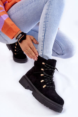 Botki Damskie Zamsz Ocieplane Czarne Laufey