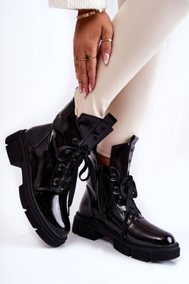 Botki Workery Damskie Lakier Ocieplane Czarne Efemia