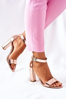 Klasyczne Skórzane Sandały Na Słupku Laura Messi 1760 Champagne
