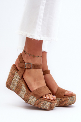 Sandały Damskie Na Koturnie Z Plecionką Camel Reviala JA-48
