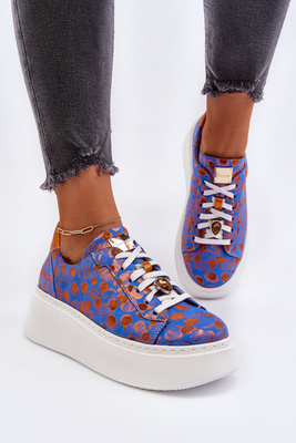 Buty Sportowe Skóra Platforma Maciejka 06191-06 Niebieskie
