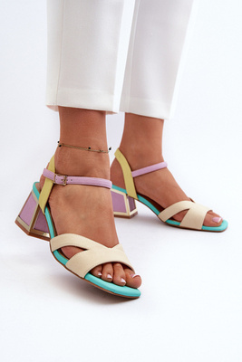 Sandały Damskie Obcas Słupek Eko Skóra Beżowe Asellesa 62111