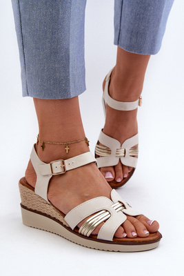 Sandały Z Ozdobami Damskie Eko Skóra Złoto-Beżowe Arcida 100-396