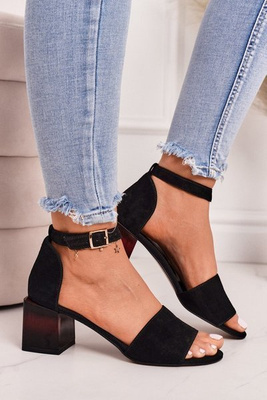 Zamszowe Sandały Na Obcasie Laura Messi 2285 Czarne